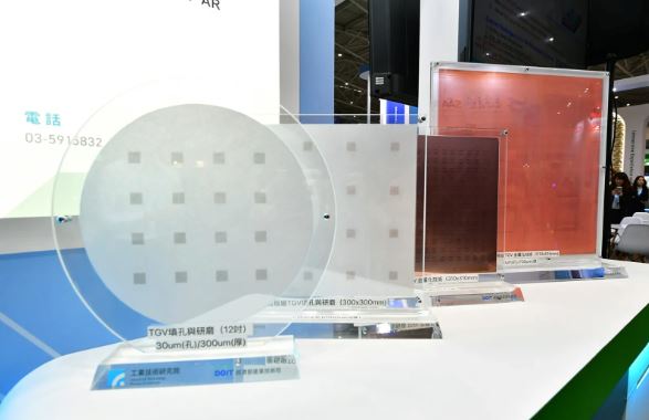 此次創新技術館聚焦「先進封裝」與「化合物半導體」,分享在經濟部產業技術司補助下,工研院也分享兩項技術產業應用成果。第一,工研院研發「次世代面板級封裝金屬化技術」,成功克服玻璃通孔填銅(Through-Glass Via,TGV)與陶瓷鍍膜瓶頸,以「全濕式鍍膜」取代傳統製程,解決細微孔洞鍍膜不連續的限制,大幅降低設備與製程成本達30%、生產更順暢,吸引宸鴻光電、聯策科技、超特國際、旭宇騰精密科技等指標大廠搶先佈局。