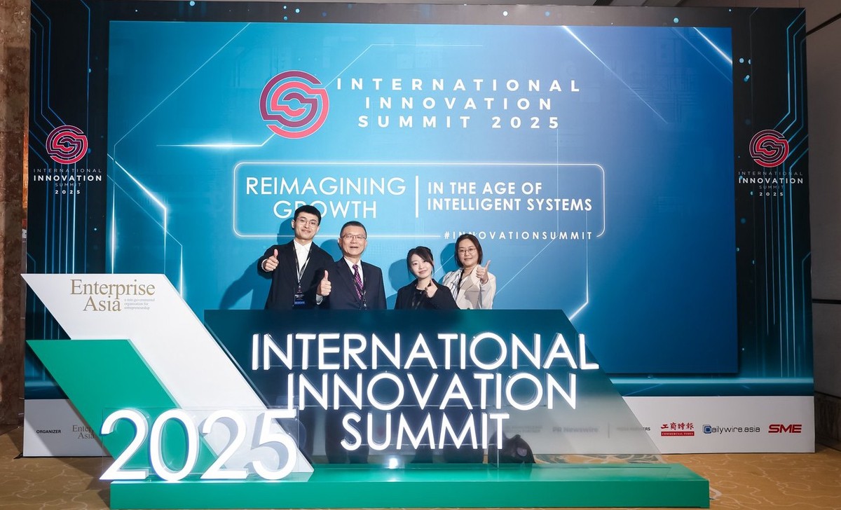 諭泰生技董事長王克舜(左2)、研究員潘妍如(左4)、助理研究員郭政原(左1)及秘書闕仕玟(左3)代表公司參加亞洲企業商會(Enterprise Asia)主辦之2025國際創新峰會(International Innovation Summit 2025)。圖/業者提供加速創新布局 邁向全球市場