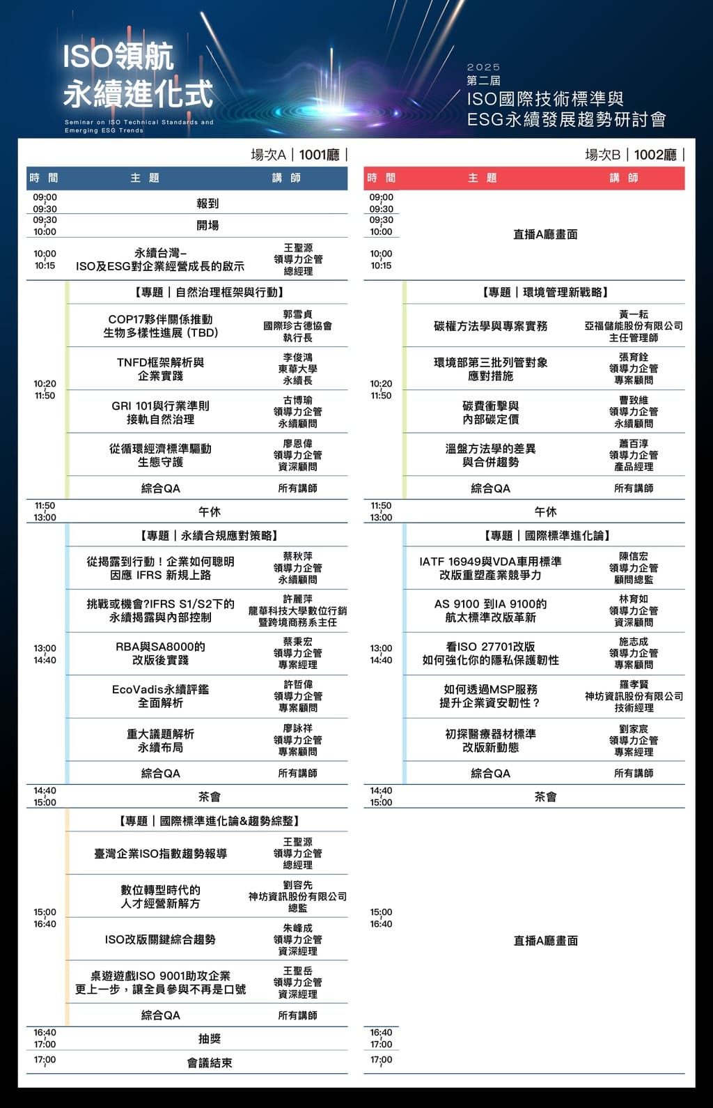 透過深入的專題演講與討論,與我們共同探索ISO標準與ESG的交會,開啟企業永續進化之路!