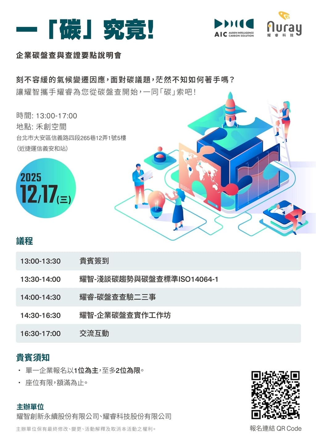 本次說明會將由耀智永續與耀睿科技攜手,帶領企業從碳盤查的基礎認識、查驗要點解析到實作演練,幫助與會者全面掌握 ISO 14064-1 標準,並於工作坊中實際演練碳盤查方法🌏