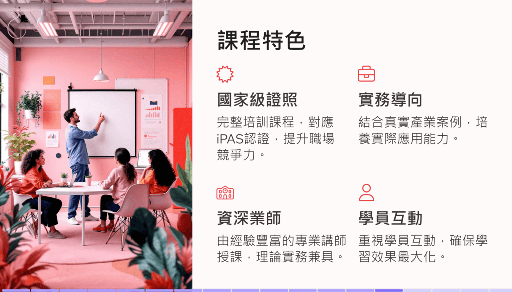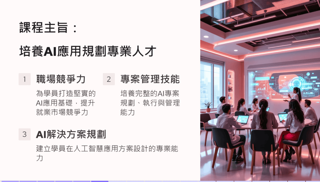 焦點資訊廣告優惠中 首頁 產業快報 iPAS AI 應用規劃師初級認證課程 #課程 即將開始 #課程 即將開始 iPAS AI 應用規劃師初級認證課程 關注 關注 複製連結 說明 時間&地點 iPAS AI應用規劃師認證課程旨在培養專業AI規劃人才,協助學員掌握AI應用開發與實施的關鍵技能。課程涵蓋AI基礎理論、機器學習模型應用、資料分析與預處理、專案管理方法論以及實務案例解析。 學員將通過理論講授與實作練習相結合的方式,學習如何評估組織需求、規劃AI解決方案、管理專案風險並確保AI系統的穩定運行。課程特別強調產業實際應用,邀請資深業界專家分享真實案例與經驗。 完成課程後,學員將具備參加iPAS AI應用規劃師認證考試的能力,並能在各行各業中規劃與執行AI轉型專案,提升組織競爭力。 了解更多 關注 關注 分享 iPAS AI 應用規劃師初級認證課程 2025-12-20 ~ 2025-12-21 立即報名 取消 複製 LINE 時間&地點 時間 09:30 ~ 16:30 日期 2025-12-20 ~ 2025-12-21 地點 105台北市松山區復興北路1號五樓 時間 09:30 ~ 16:30 日期 2025-12-20 ~ 2025-12-21 地點 105台北市松山區復興北路1號五樓 1/1 分享給你 #活動 即將開始 台北 2025-11-19 經濟部產業發展署 東協五國及印度 全球鏈動 - 供應鏈移轉交流會 經濟部產業發展署 台北 #活動 已經結束 台北 台中 高雄 2025-09-04 ~ 2025-09-18 華苓科技股份有限公司 從無紙到無人 AI Agent賦能協同,辦公場景大挪移 華苓科技股份有限公司 台北 台中 高雄 #課程 即將開始 台北 2025-11-29 資策會MIC產業顧問學院 從產品策略、產品組合到敏捷開發流程完全掌握|AI驅動的產品策略與開發實務 資策會MIC產業顧問學院 台北 #課程 已經結束 新竹 2025-09-23 ~ 2025-09-25 工業技術研究院 產業學院 太陽光電系統生命週期評估 工業技術研究院 產業學院 新竹 #活動 已經結束 線上 2025-09-26 工研院產業科技國際策略發展所 Re:Form未來:永續、數位與創新應用在商業服務業的整合實踐線上研討會 工研院產業科技國際策略發展所 線上 #展覽 已經結束 日本 2025-04-13 ~ 2025-10-13 日本國際博覽會協會 EXPO 2025年世界博覽會 日本國際博覽會協會 日本 #活動 已經結束 台北 2025-08-26 工研院 產業科技國際策略發展所 智慧機器人剛性需求的突破與發展研討會 工研院 產業科技國際策略發展所 台北 #活動 已經結束 新竹 2025-06-26 財團法人資訊工業策進會、台灣區電機電子工業同業公會 AI驅動下的半導體產業創新與挑戰 財團法人資訊工業策進會、台灣區電機電子工業同業公會 新竹 #課程 即將開始 台北 2025-11-20 ~ 2025-11-27 永訊智庫股份有限公司 碳盤查數位化實戰:企業碳盤查效率升級指南 永訊智庫股份有限公司 台北 AI 塑膠 材料 Python 3D 人工智慧 物聯網 辨識 機械 社群 程式碼 自動化 資料分析 行銷 大數據 智慧製造 程式語言