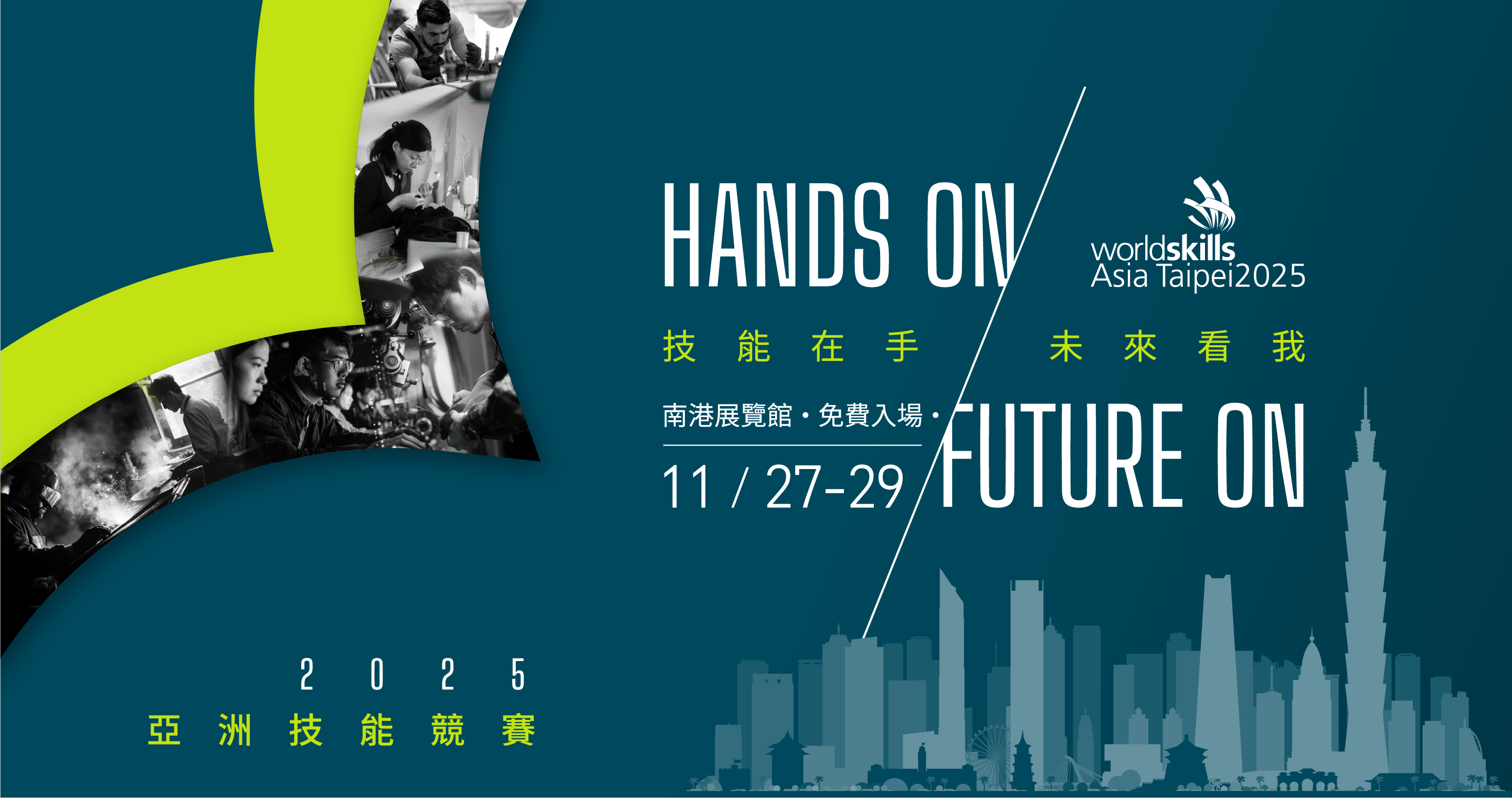亞洲技能競賽中的盛事「WorldSkills Asia Taipei 2025」將於 2025 年 11 月 27 日至 29 日 在臺北市 南港展覽館 1、2 館盛大舉辦。