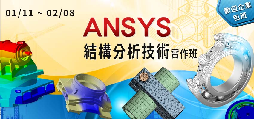ANSYS為通用之有限元素分析法軟體之一。本課程為進入ANSYS使用環境進行結構分析之課程。內容包含限元素模型建立,網格品質,基礎接觸控制、結構靜態分析,結構動態分析。結構分析技術亦包含挫曲分析,與疲勞分析、熱傳分析、後處理、最佳化設計與分析問題排除等等項目。由於結構設計的優劣會直接影響標的物的性能表現,在競爭激烈的時代精確的設計已是提昇產品競爭力必要的方法,且最佳化亦是設計工程師的目標,也是設計工藝水準的表現。